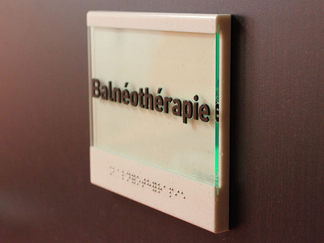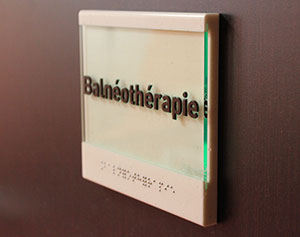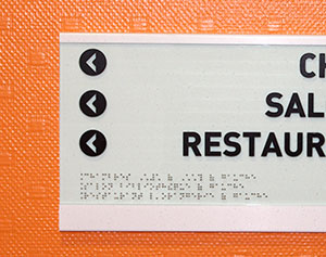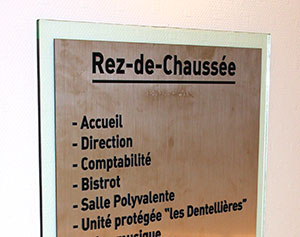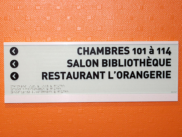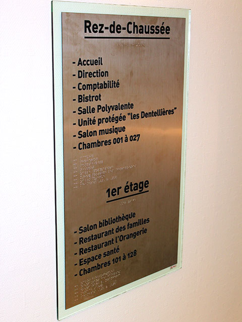 panneau général en plexiglass avec tôle alu, texte en relief et braille