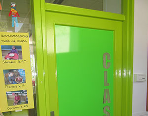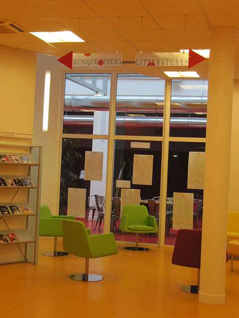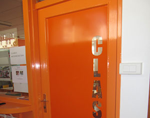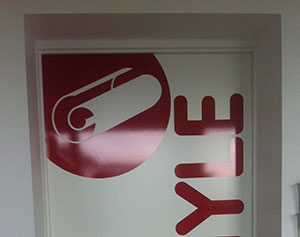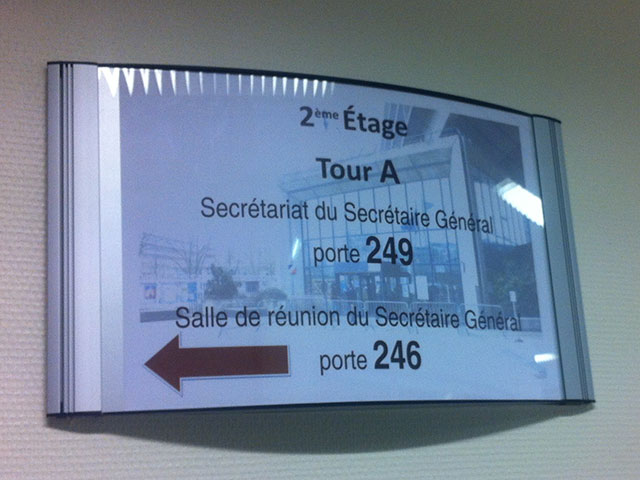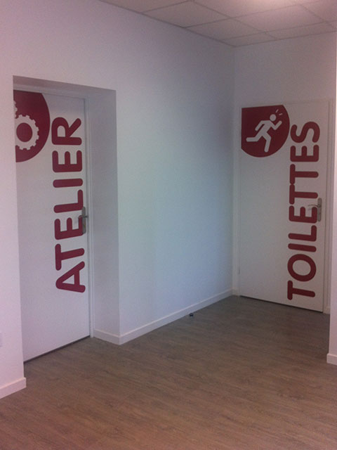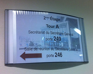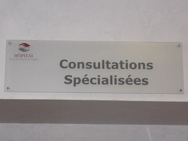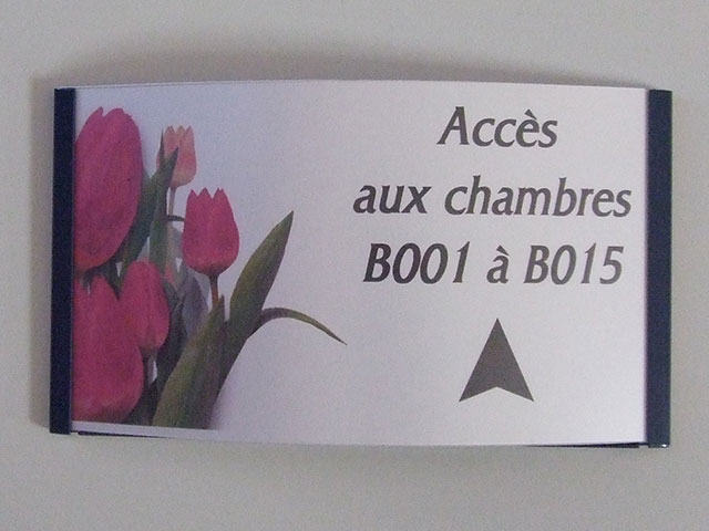 plaque d'identification en plexiglass dépoli et texte adhésif en face avant