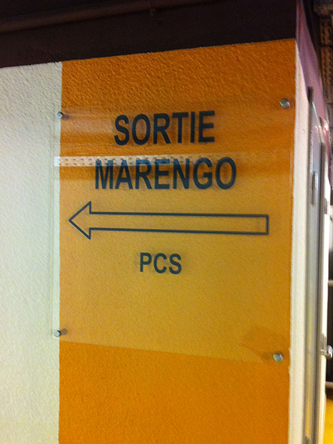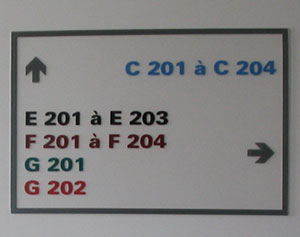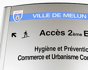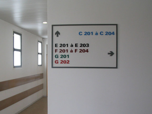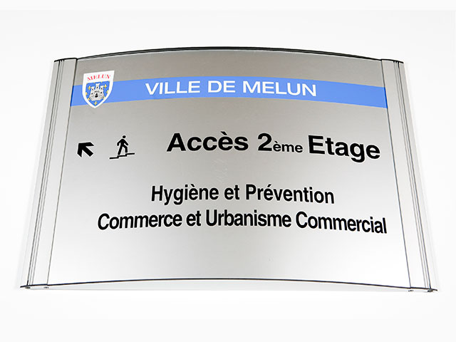 panneau directionnel en aluminium anodisé naturel, texte adhésif
