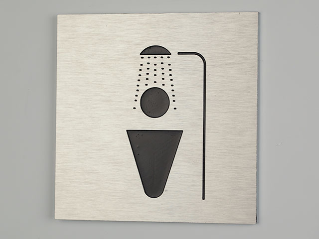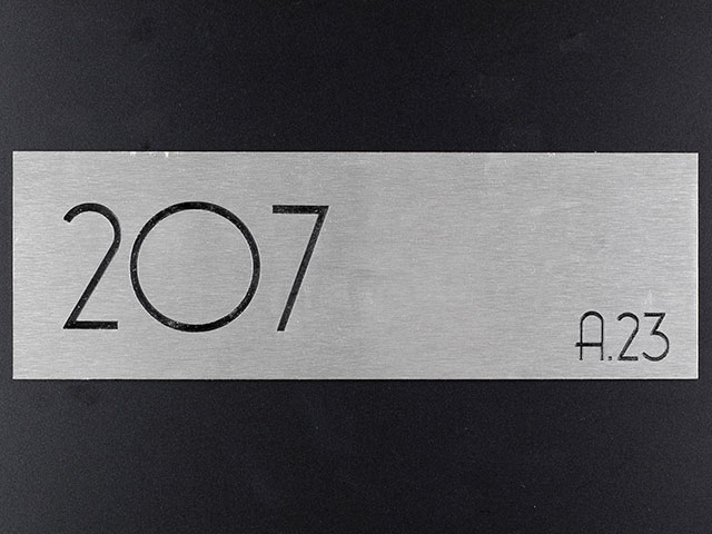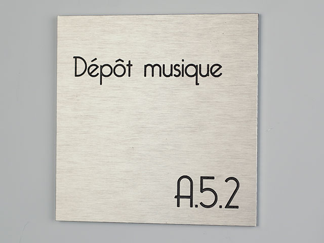 plaque en aluminium brossé, texte en adhésif